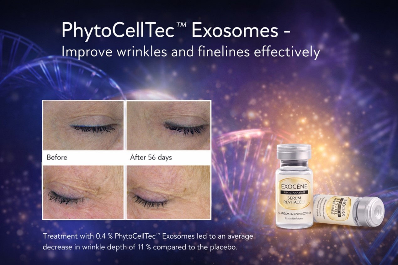 Treatment with 0.4 % PhytoCellTec™ Exosomes led to an average decrease in wrinkle depth of 11 % compared to the placebo.